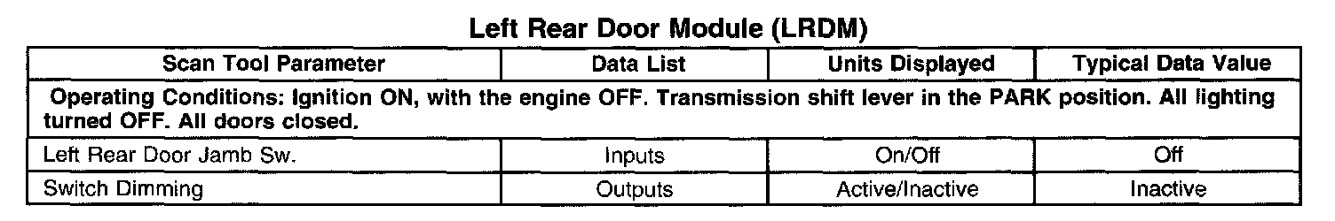 Scan Tool Data List - Left Rear Door Module (LRDM)