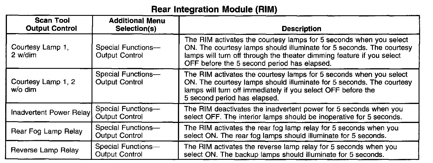 Scan Tool Output Controls - Rear Integration Module (RIM)