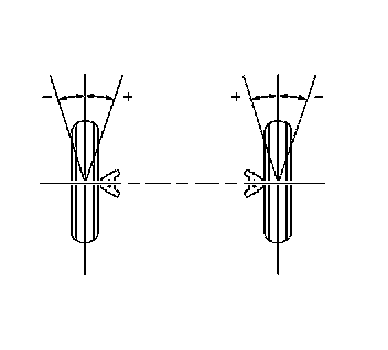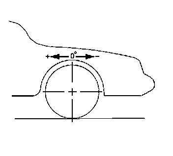 Camber is the tilting of the wheels from the vertical when viewed from the front of the vehicle. When the wheels tilt outward at the top, the camber is positive (+). When the wheel tilts inward at the top, the camber is negative (-). The amount of tilt is measured in degrees from the vertical. Camber settings influence the directional control and the tire wear.