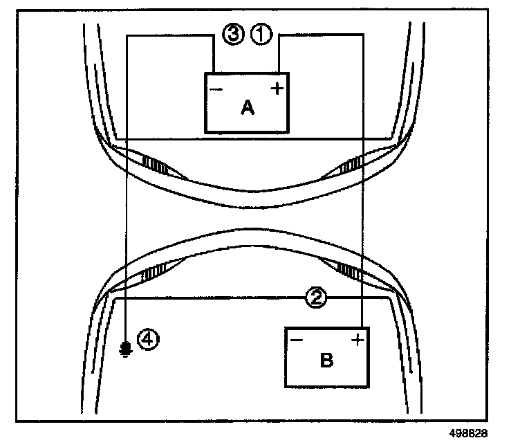 11. The black negative (-) cable must be first disconnected from the vehicle that was boosted (4).