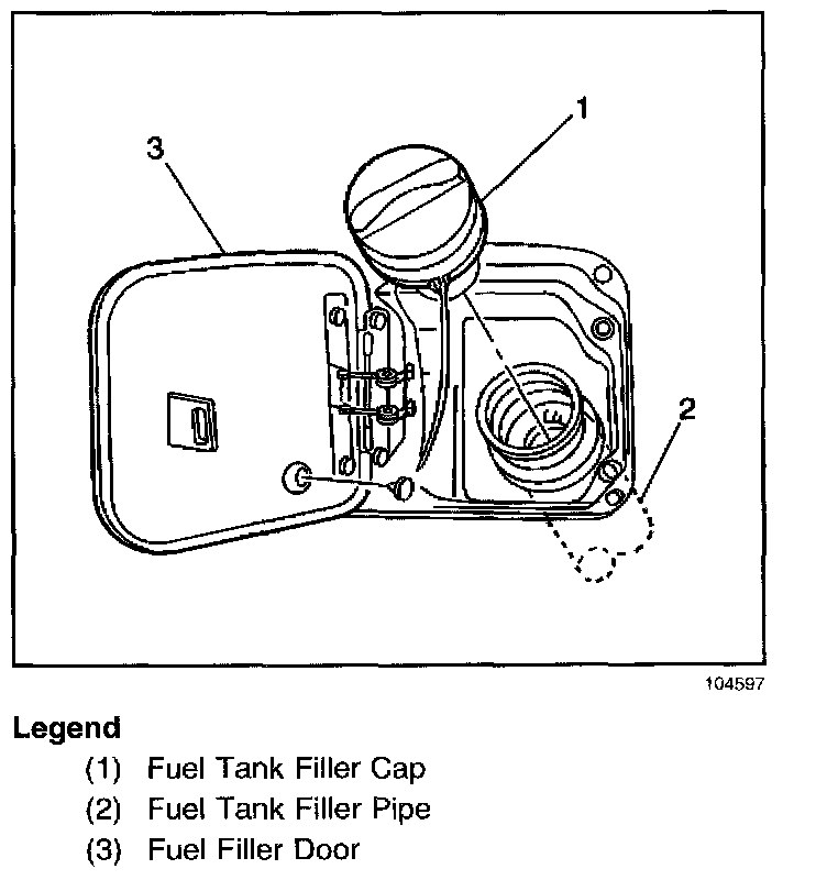 NOTE: Use a fuel tank filler pipe cap with the same features as the original when a replacement is necessary. Failure to use the correct fuel tank filler pipe cap can result in a serious malfunction of the fuel system.