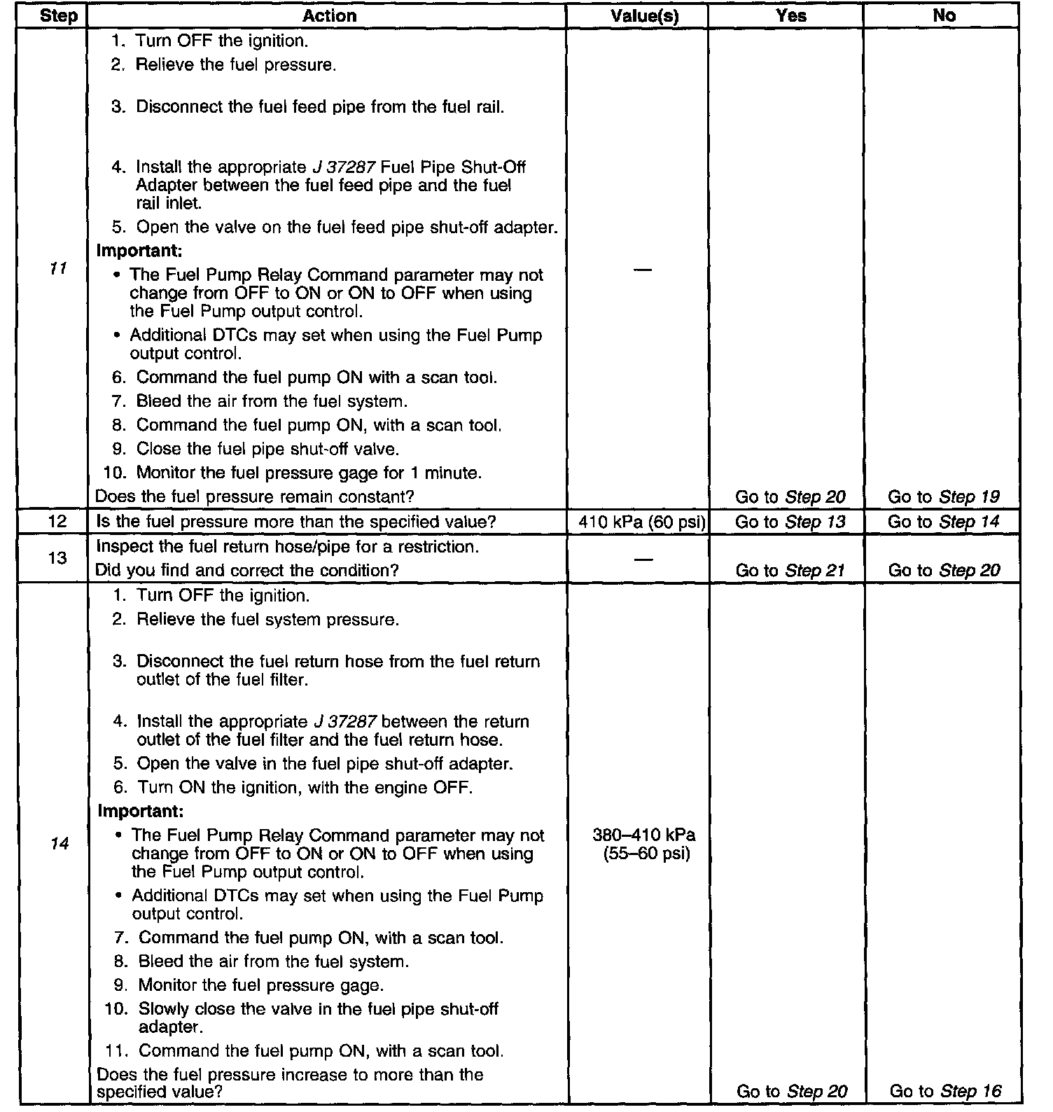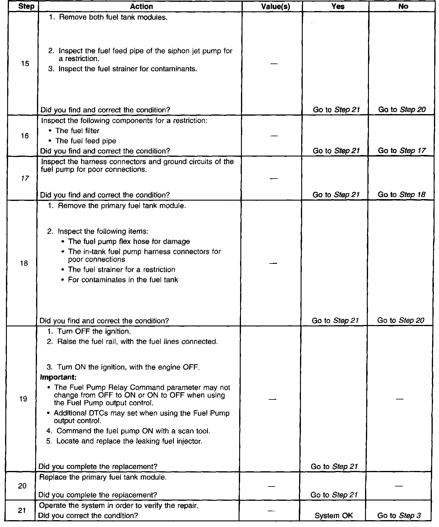 17. This step verifies that a circuit condition is not the cause of a fuel pressure concern. Inspect all fuel pump electrical circuits thoroughly.