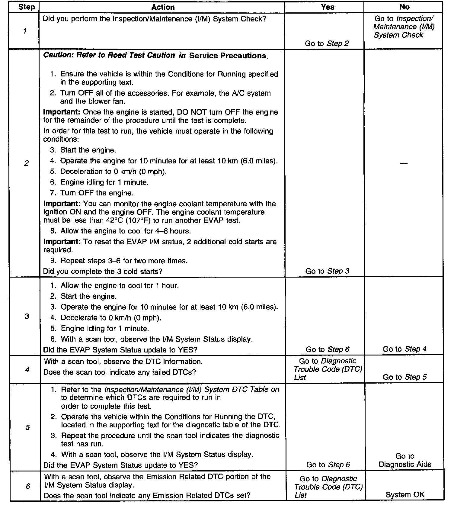 6. The I/M System Status only reports on whether or not a diagnostic has run, not what the outcome of the test was. If any emission related DTC sets after the tests are complete, the DTC will require diagnosis.