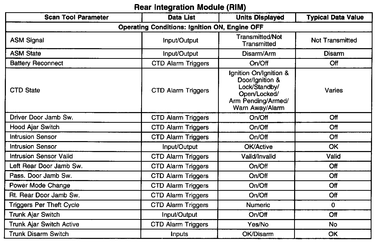 Scan Tool Data List - Antitheft System