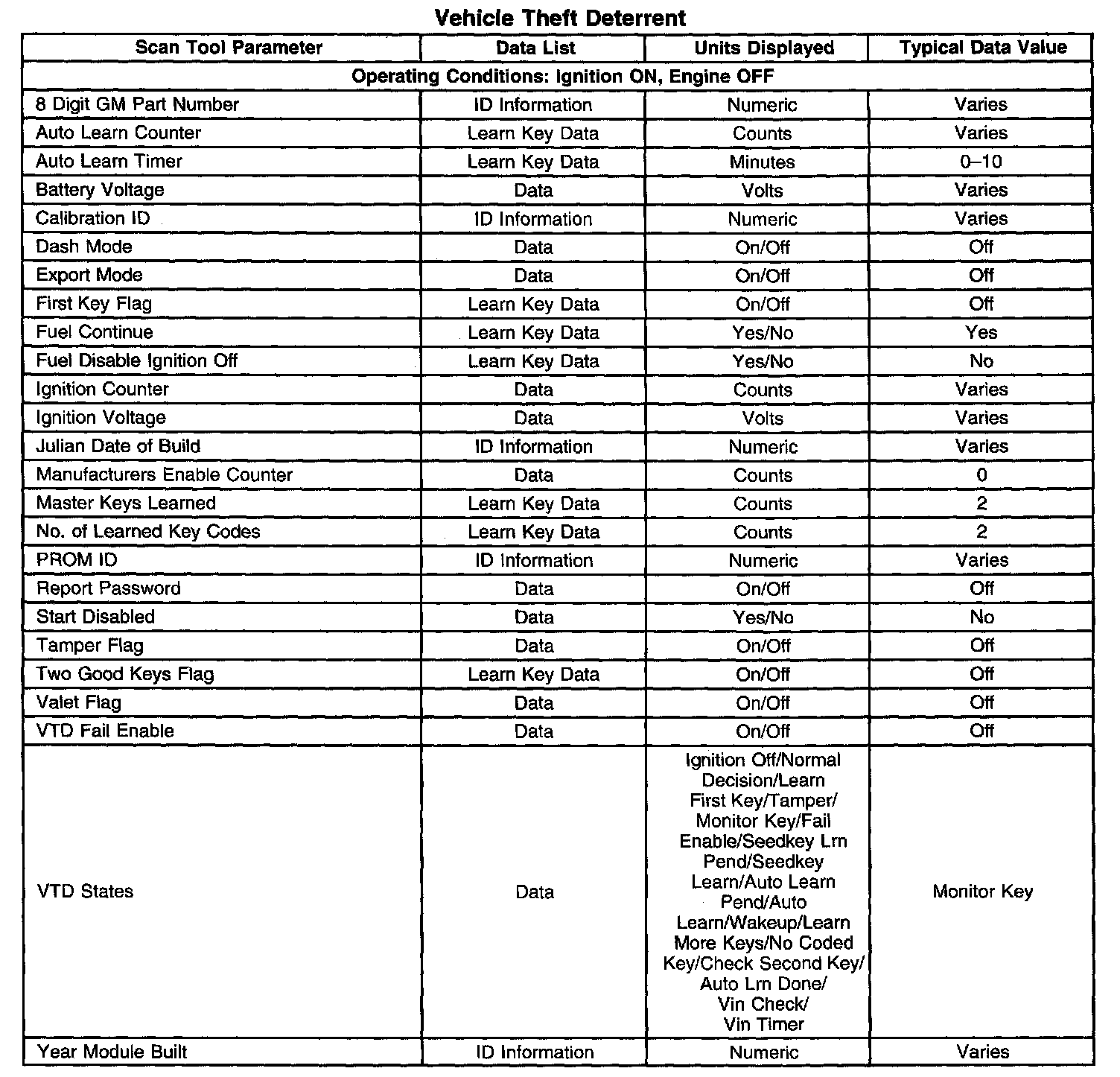 Scan Tool Data List - Antitheft System