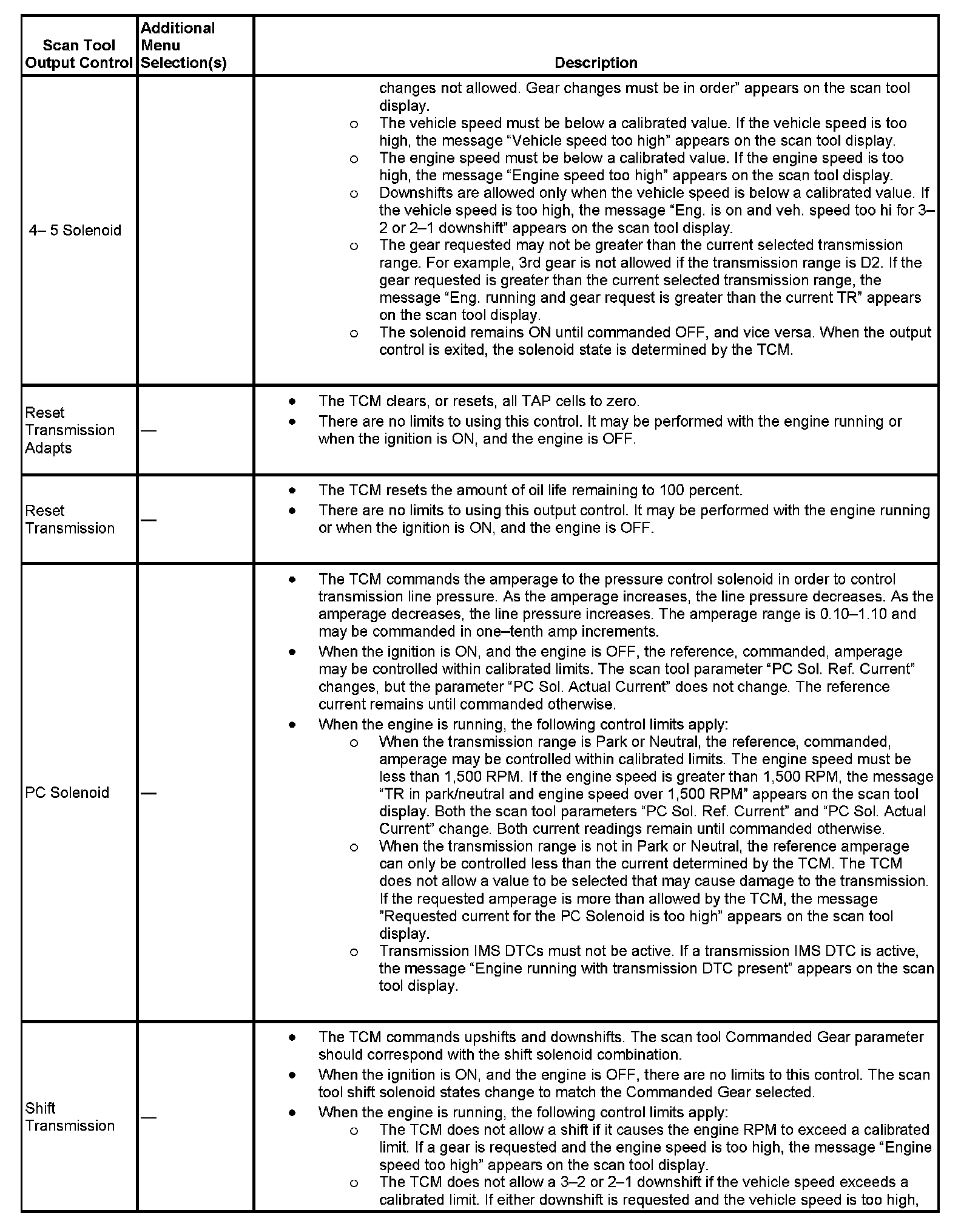 Scan Tool Output Controls