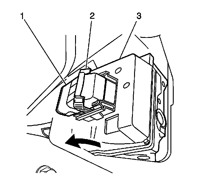 8. Rotate the EBCM connector tab (2) forward to the unlocked position.