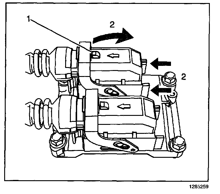 7.2. Simultaneously rotate the ECM connector clamp lever and depress the lock slide (2).