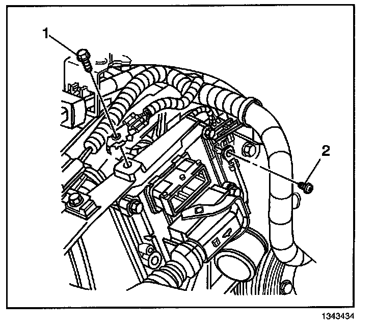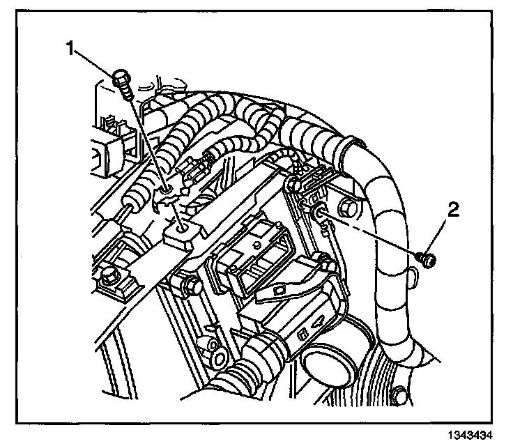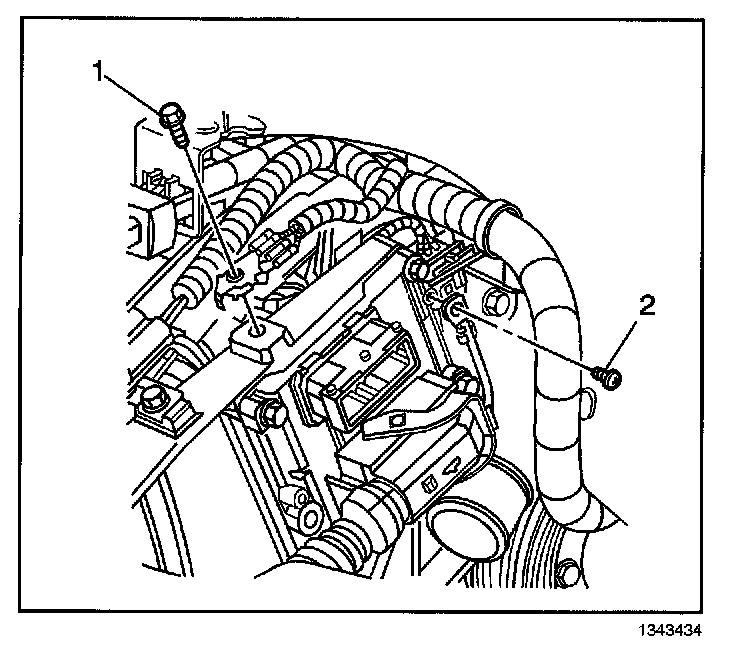 2.1. Tighten the ECM bracket bolt (2) to 10 N.m (89 lb in).
