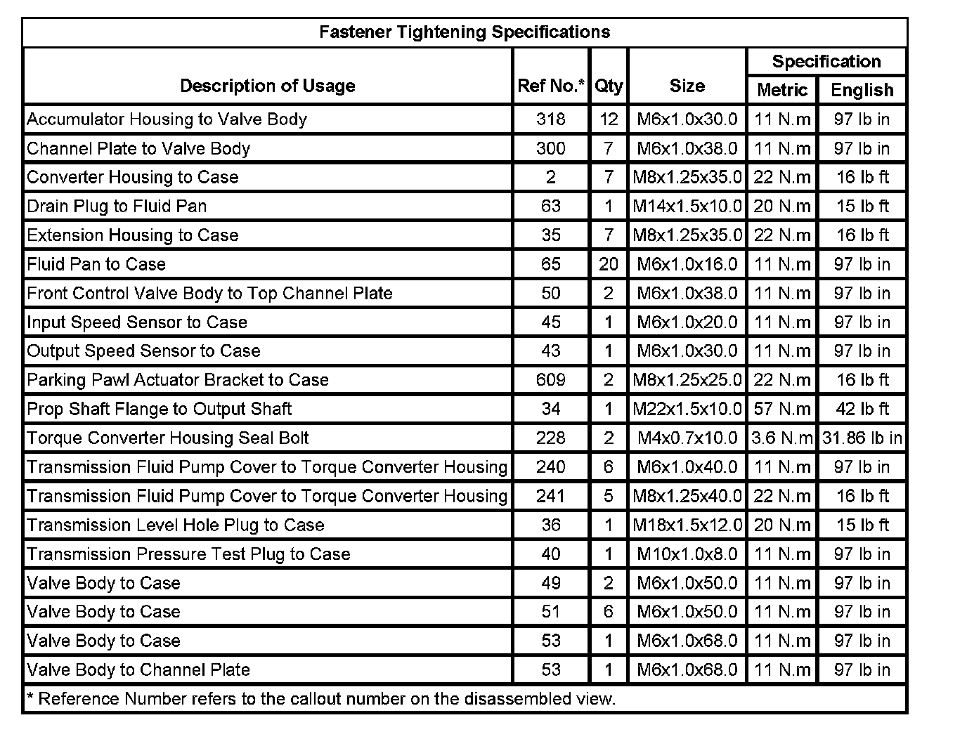Fastener Tightening Specifications - Unit Repair
