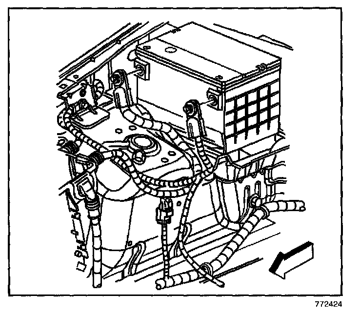 1. Position the battery positive cable to the engine.
