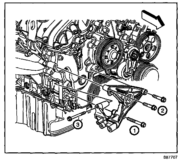2.3. Tighten the generator bracket bolt (3) to 23 N.m (17 lb in).