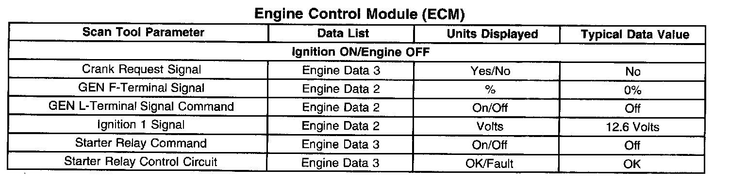 Normal Scan Tool Data Values
