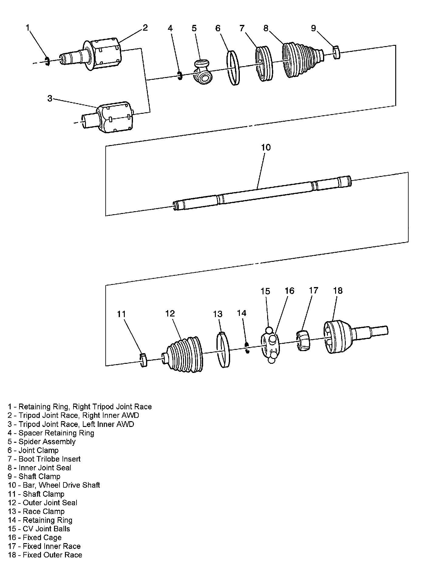 Wheel Drive Shafts Disassembled Views - Front