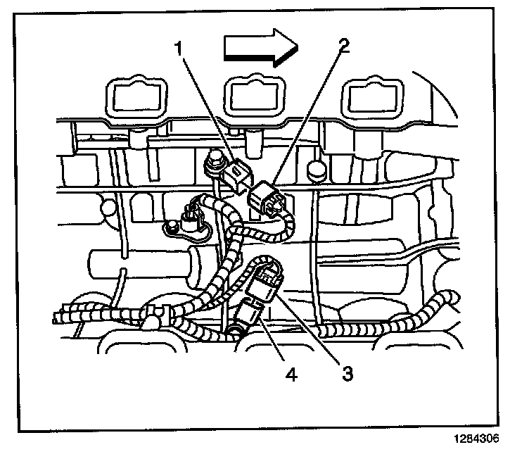 2. Disconnect the electrical connector (2) from the knock sensor (1).