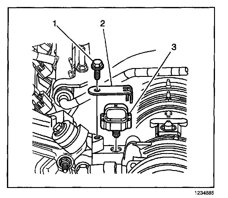 4. Remove the bolt (1) and bracket (2) from the MAP sensor (3).