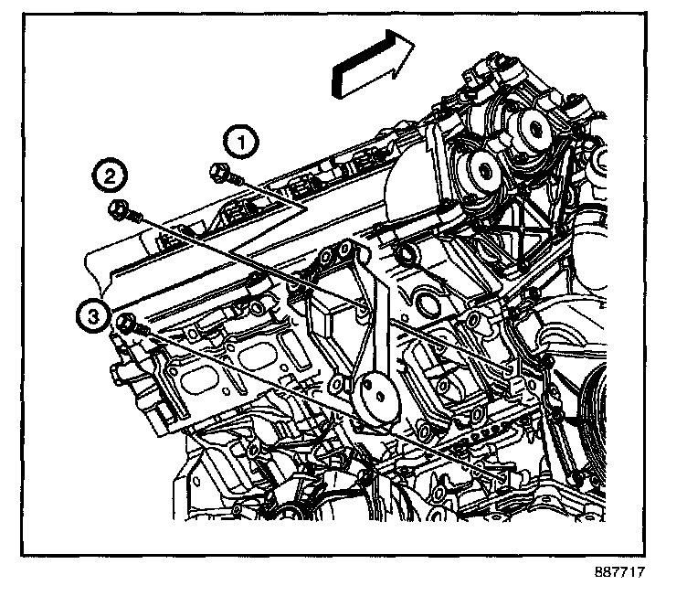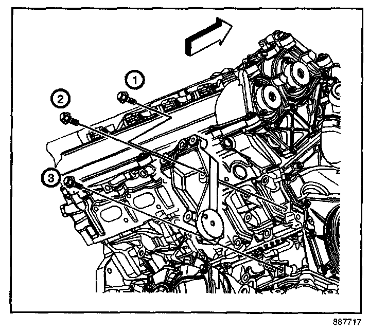 5. Remove the generator bracket bolts (1, 2 and 3).