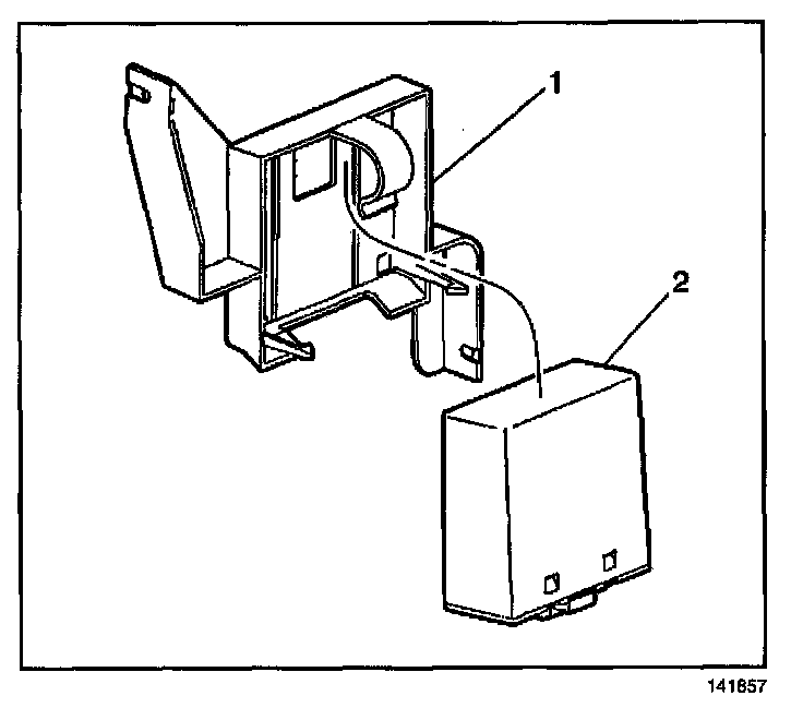 1. Slide the module (2) up into the bracket (1) until the bottom clears the bracket and sits flush within the bracket.