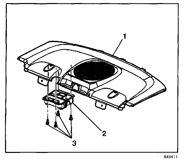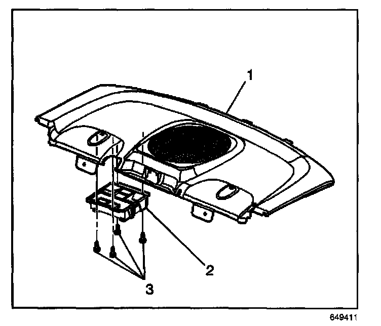 3. Remove the four fasteners (3) retaining the cellular telephone module and bracket assembly (2) to the rear shelf trim panel (1).