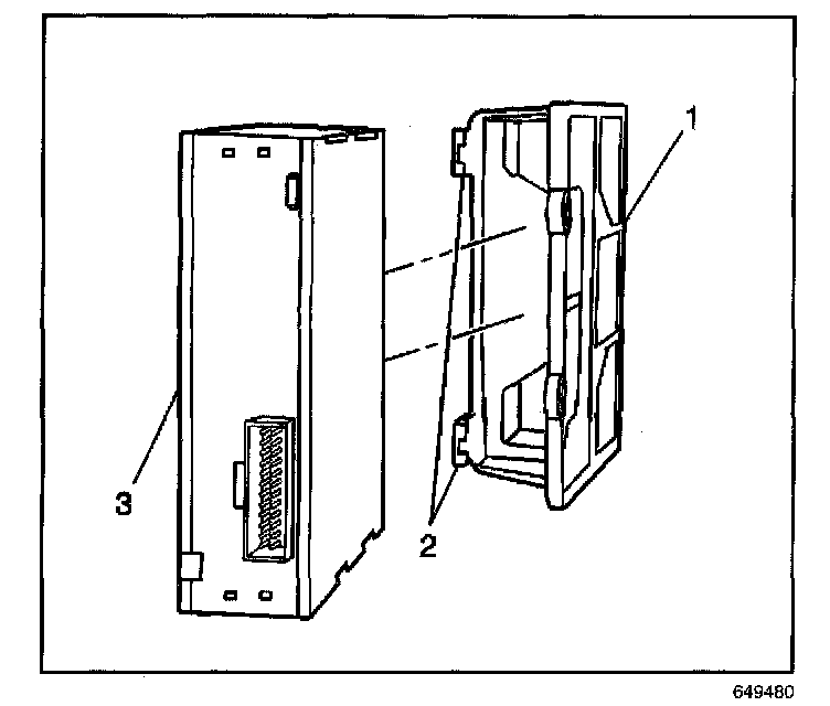 1. Slide the cellular telephone module (3) into the mounting bracket (1), until an audible click is heard, indicating the cellular telephone module (3) is secured in the mounting bracket (2).