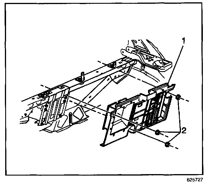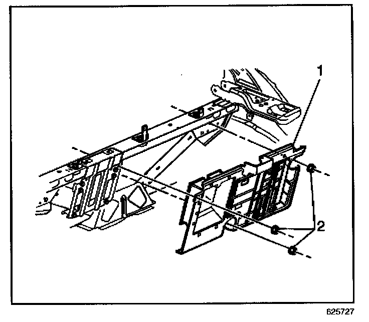3. Carefully pull the electrical component mounting bracket (1) away from the body, so that the cross car brace is visible.