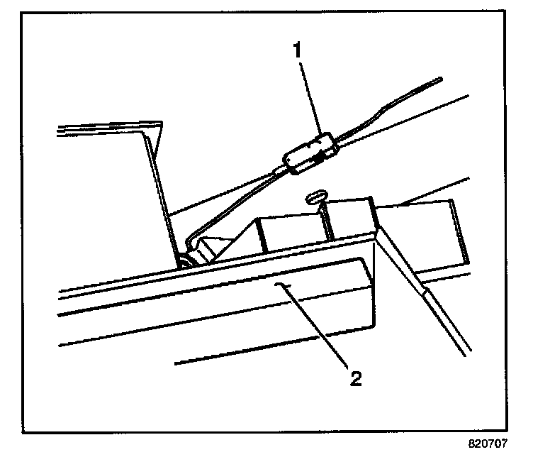 6. Attach the GPS antenna cable (1) to the cross car brace.