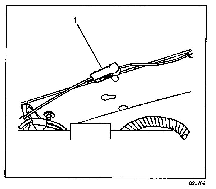 4. Remove the GPS antenna cable (1) from the cross car brace.
