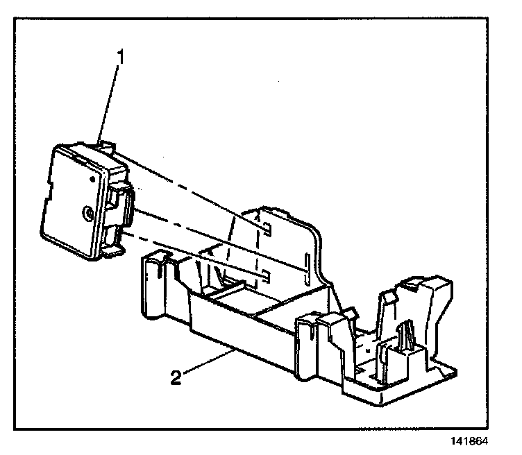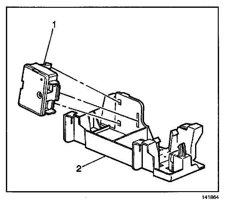 4. Remove the remote control door lock receiver (1) from the bracket (2).