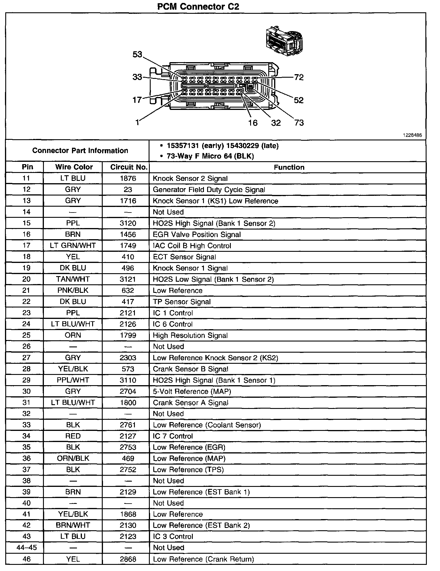 Powertrain Control Module (PCM) Connector C2
