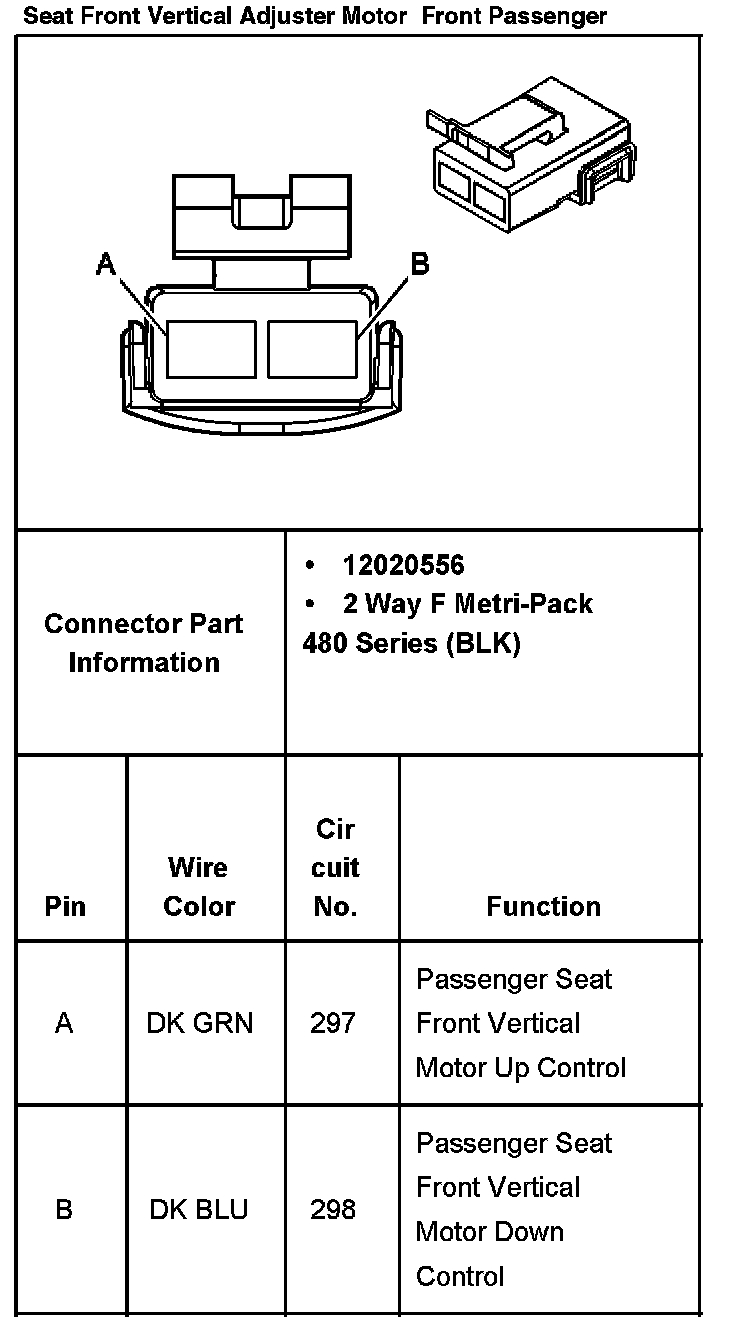 Seat Front Vertical Adjuster Motor - Front Passenger: