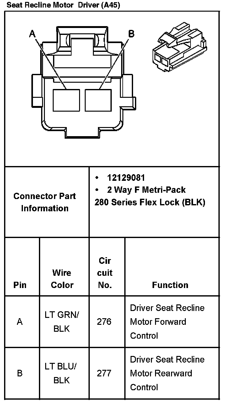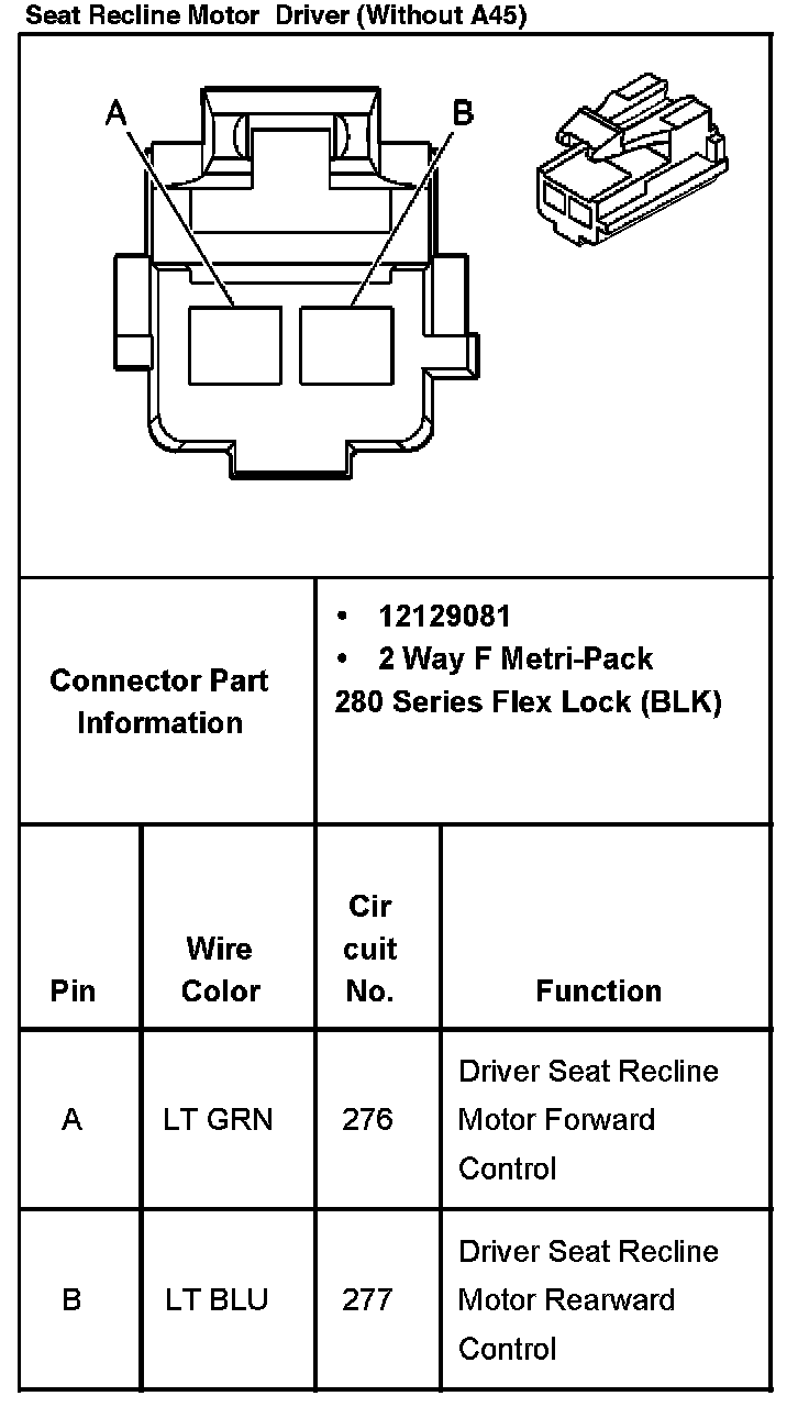 Seat Reline Motor - Driver (Without RPO Code A45):