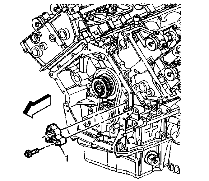 2. Remove the two bolts attaching the primary camshaft drive chain guide (1) to the engine block.