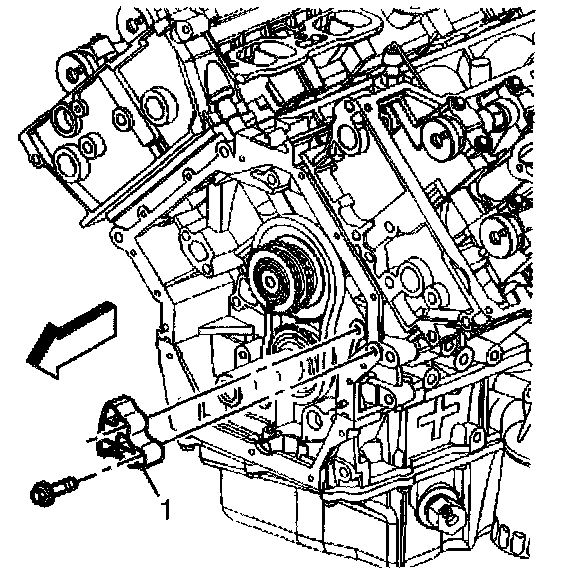 1. Install the primary camshaft drive chain guide (1) and retaining bolts.