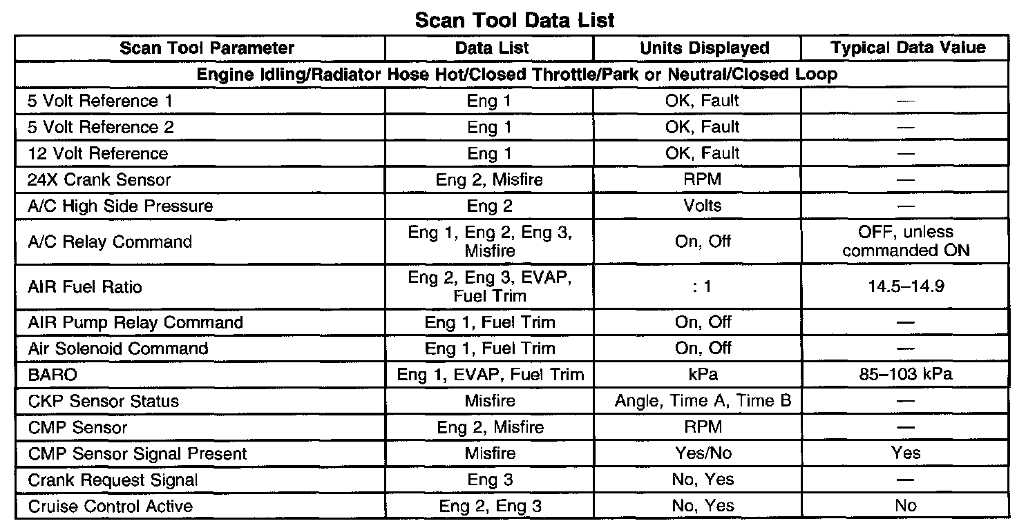 Scan Tool Data, Normal Values and Definitions
