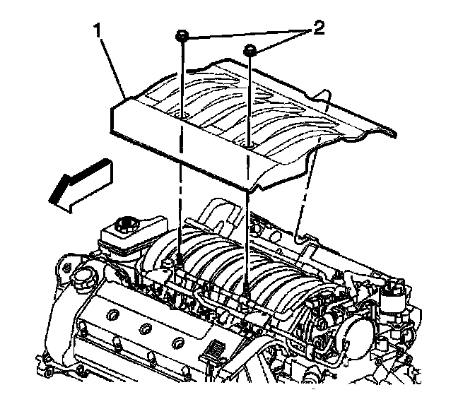 1. Remove the two nuts (2) from the fuel injector sight shield (1).