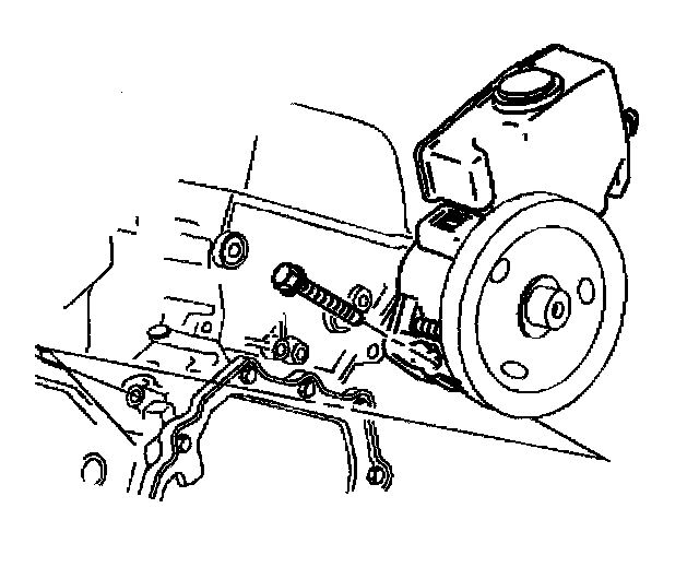 4. Place the power steering pump in position lathe engine valley. Slide the molded wedge into the retaining feature cast into the cylinder block.