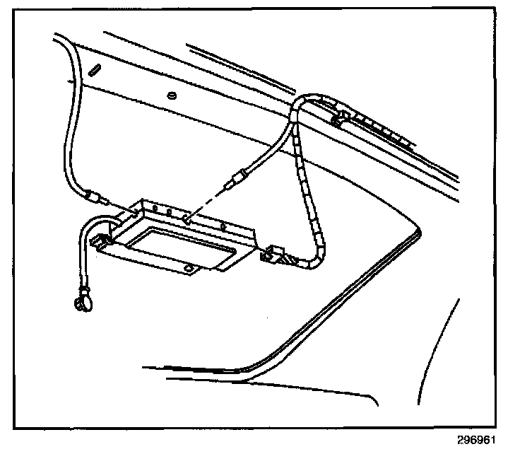 4. Remove the fastener retaining the radio antenna module to the roof beam.