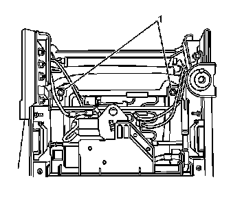 8. Adjust the front seat assembly up and forward in order to access the fasteners (1) at the rear of the front seat cushion assembly