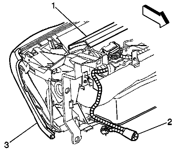 5. Remove the yellow connector (2) on the inflatable restraint I/P module from the I/P bracket (3).
