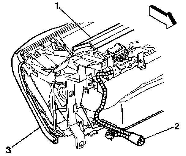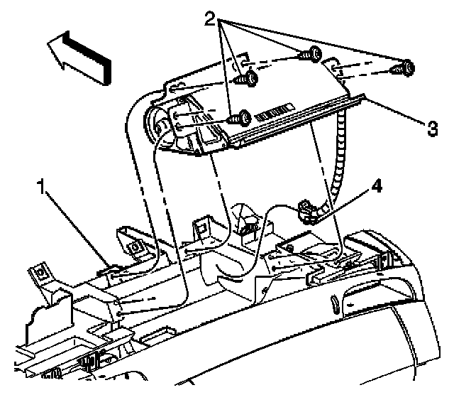 10. Remove the inflatable restraint module (3) from the I/P (1).
