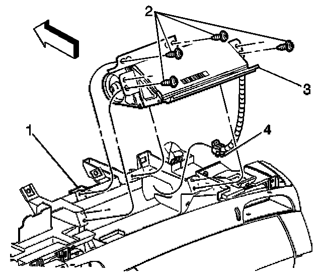 1. When installing the inflatable restraint module (3), do not damage the pigtail and the connector (4).