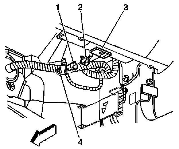 12. When removing the inflatable restraint I/P module (3), do not damage pigtail and the connector (4).
