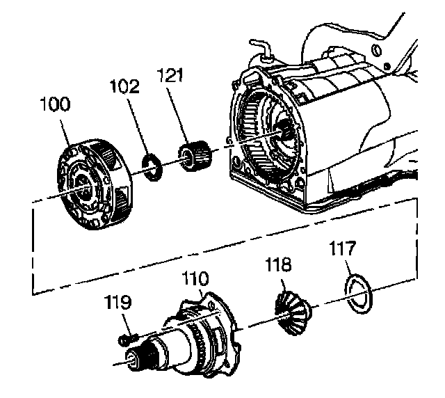 1. Locate the dowels on the final drive carrier (100) and insert these dowels into the holes in the differential carrier (110) for proper assembly.
