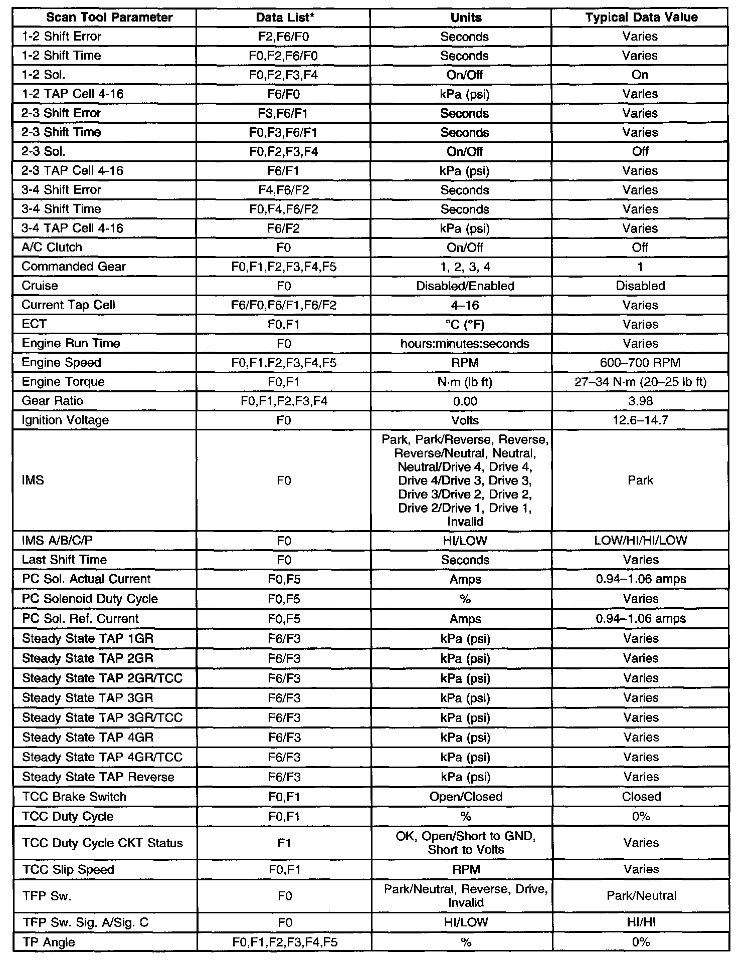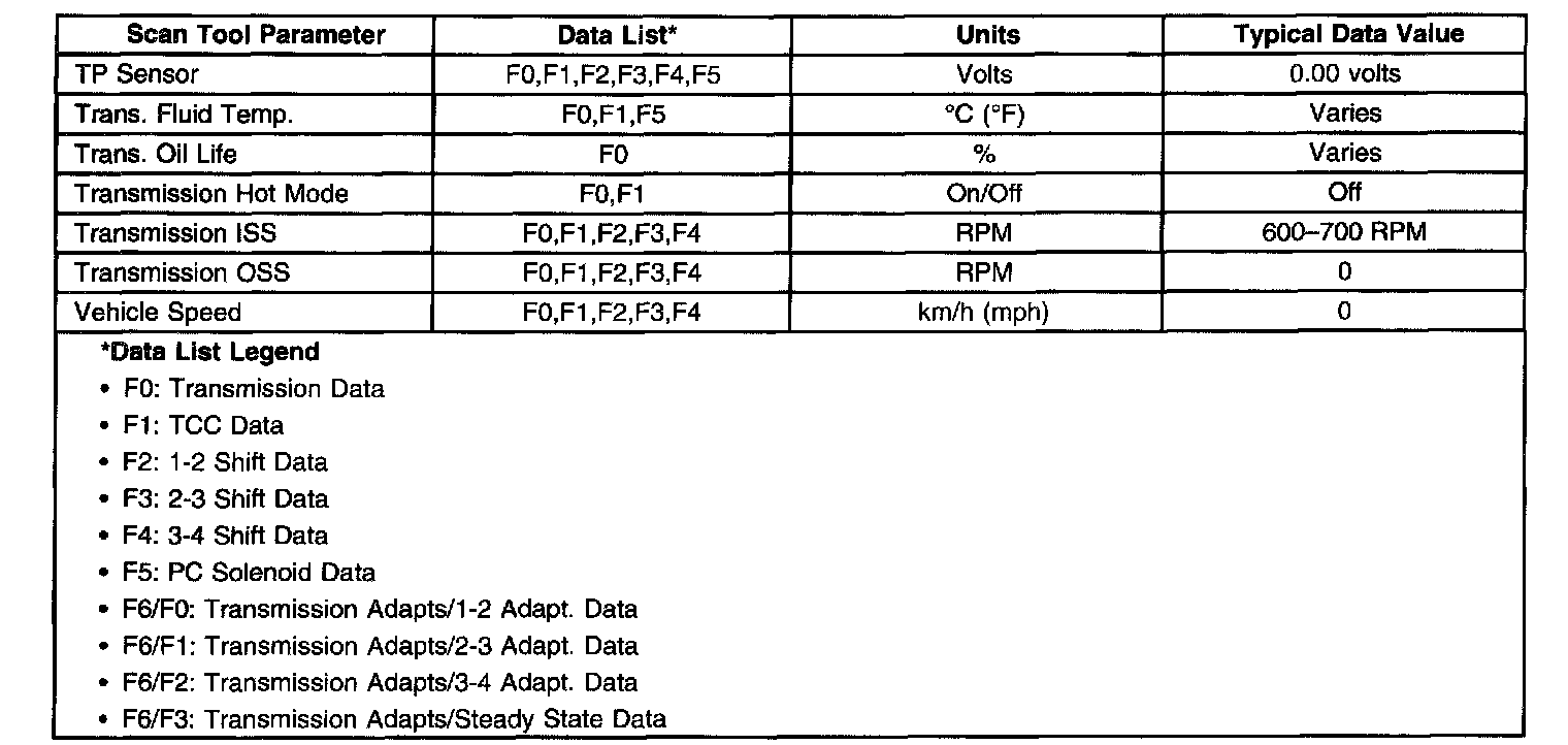 Transmission Scan Tool Data ListUse the scan tool data values under the following conditions: