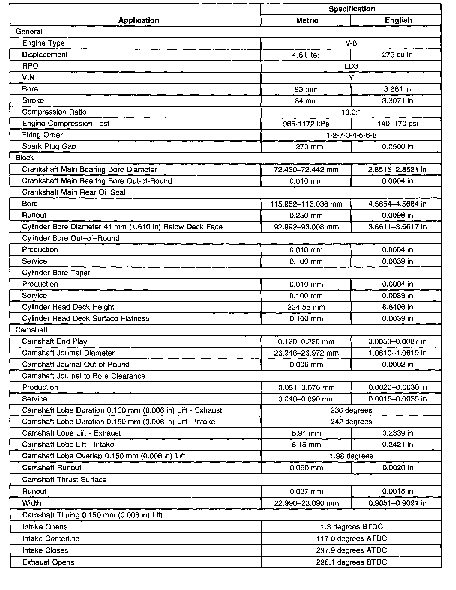 Seville V8-4.6L VIN Y