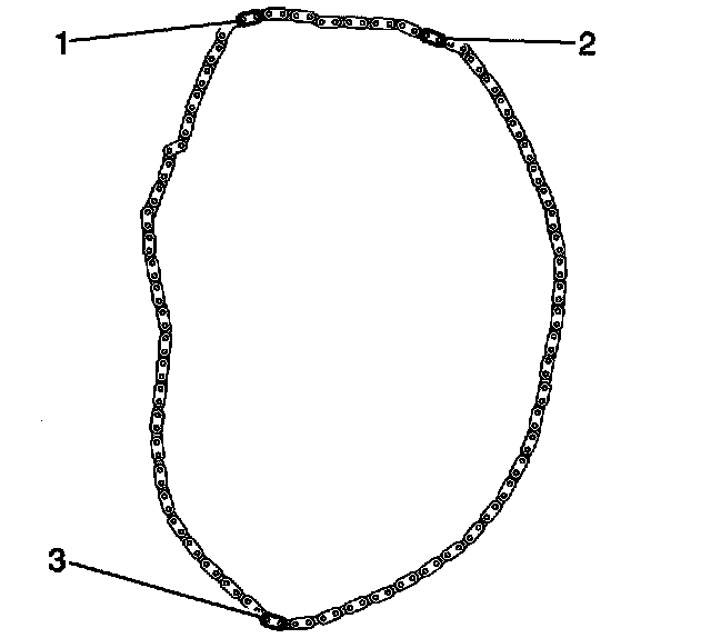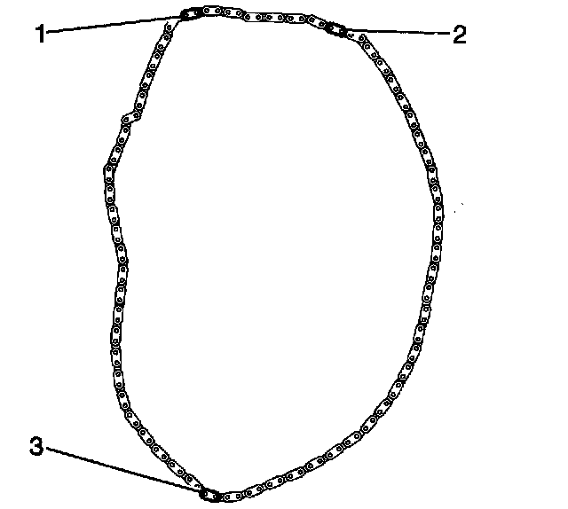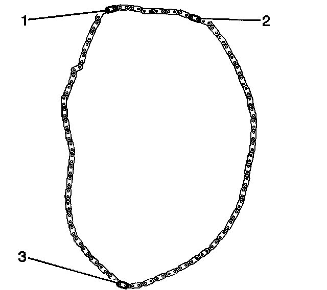 8. Assemble the left secondary timing chain to the left intake camshaft position actuator, and the left intermediate timing sprocket, with the alignment marks adjacent to the black chain links (1, 3) as indicated above.