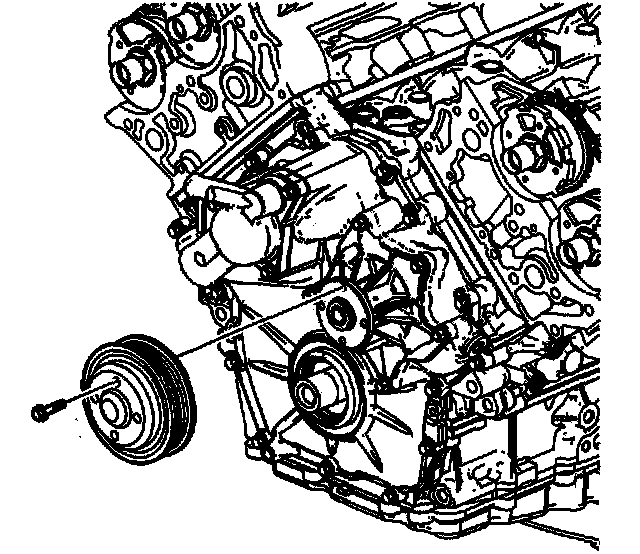 4. Apply the thread locking compound GM P/N 12345382 (Canadian P/N 10953489) or equivalent to the threads of the engine front cover bolts.