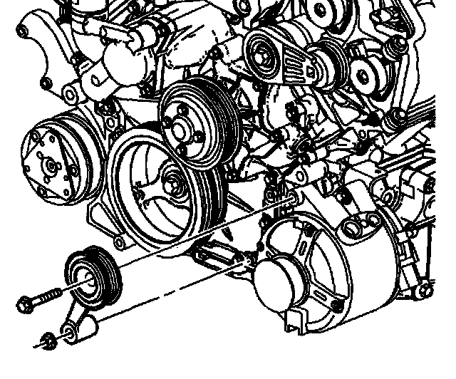 7. Remove the drive belt idler pulley bolt. Remove the drive belt idler pulley.