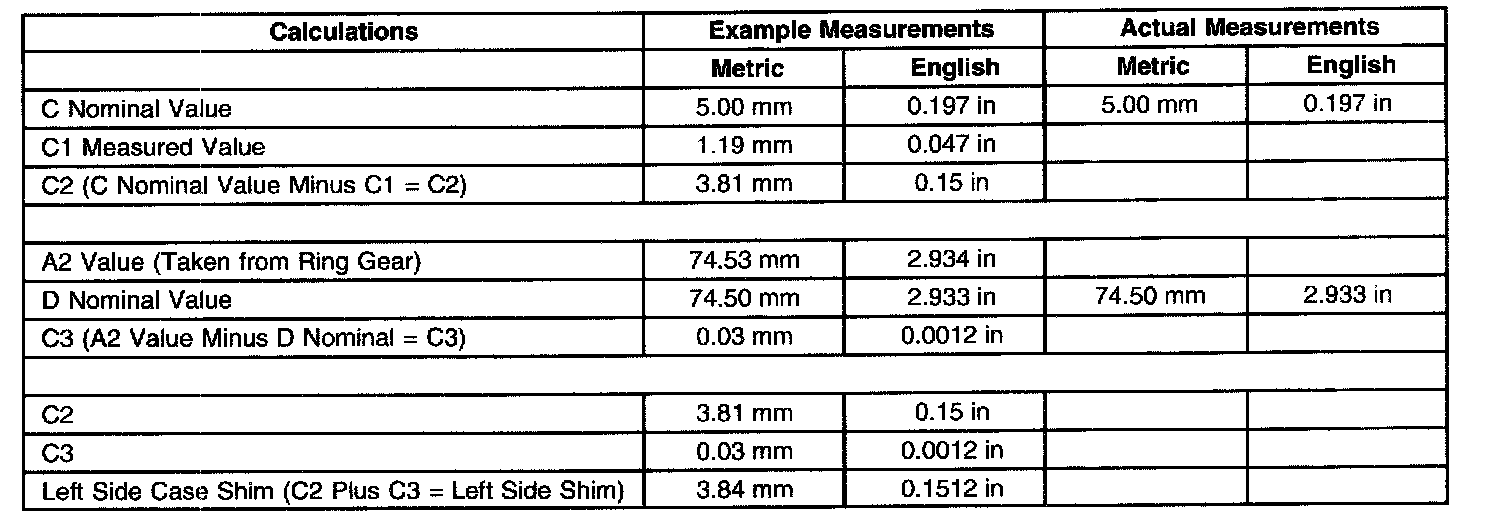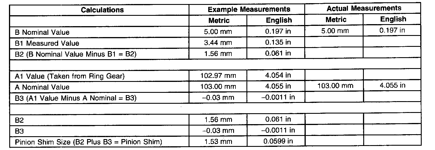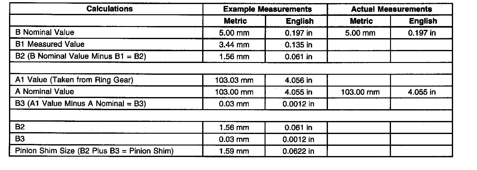 Spacer and Shim SpecificationsPinion Shim Calculation Table with an Al Value Greater Than 103.00 mm (4.055 inch)