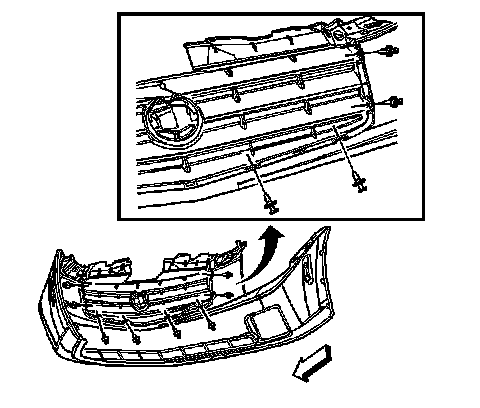 1. Remove the front bumper fascia. Refer toFascia Replacement - Front Bumper (Fascia Replacement - Front Bumper) in Bumpers.